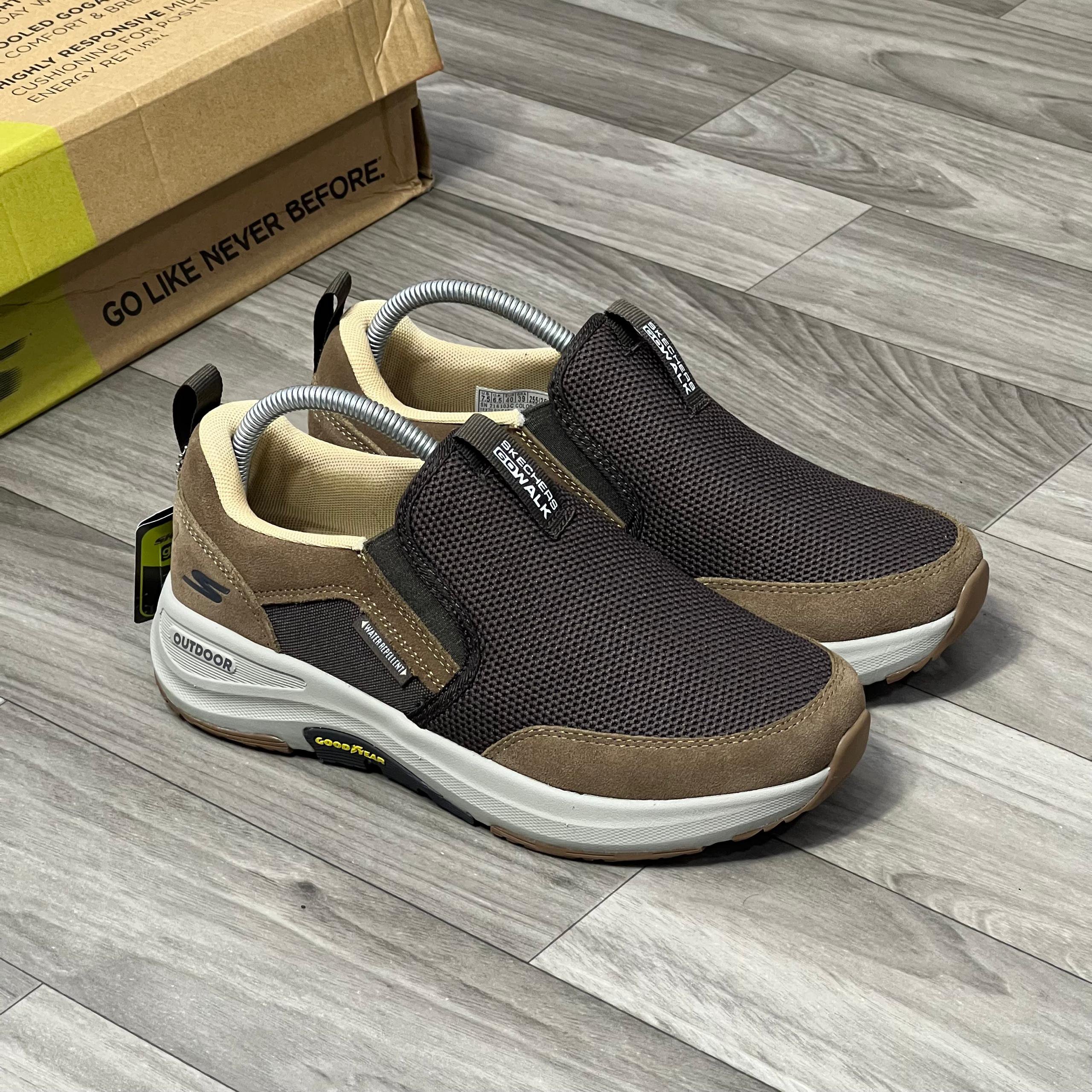 EXPLORE THE TRAILS OF NATURE IN LONG-LASTING CUSHIONED COMFORT WITH THE SKECHERS GO WALK OUTDOOR – ANDES SHOE. THIS PULL-ON WALKING ER FEATURES A BREATHABLE ATHLETIC MESH AND LEATHER TRIM UPPER WITH AN AIR-COOLED MEMORY FOAM CUSHIONED INSOLE AND A LIGHTWEIGHT.